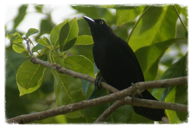 Carib Grackle Intense black graceful bird. Very cheeky and tame, often seen in groups. They eat insects, but also love the leftovers of bathers.