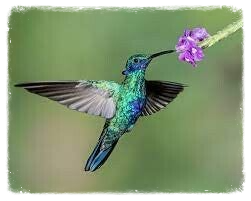 Smaragd Kolibrie Deze piepkleine nectar etend vogeltjes met hun metallieke veertjes zijn waarschijnlijk wel de populairste bezoekers van onze tuin.
